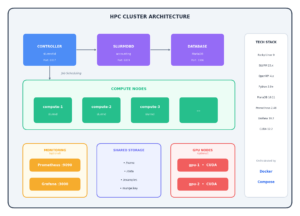 High-performance computing shouldn’t require a six-figure budget and a dedicated data center. I built Docker HPC Cluster—a fully containerized, production-ready HPC environment that you can spin up on your laptop, homelab, or cloud infrastructure in minutes.